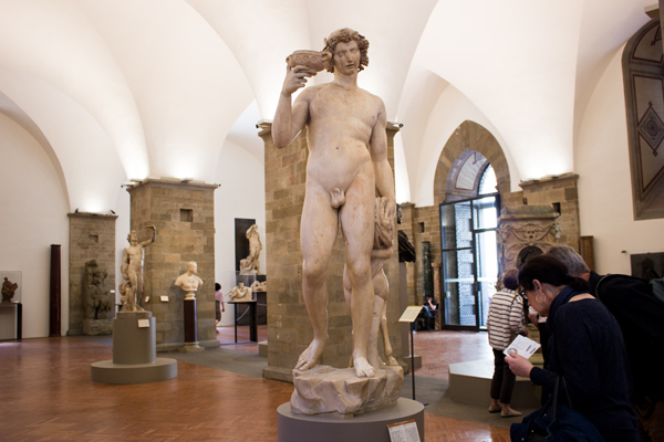 次は、バルジェッロ国立博物館に向かいます、最初は、ミケランジェロの部屋から始まります、大きな彫刻は、バッカスです。 |