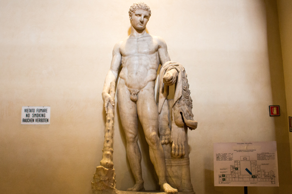 ヴェッキオ橋を渡って、歩いて行くと、大きな建物が見えて来ました、パラティーナ美術館に向かいます。 |